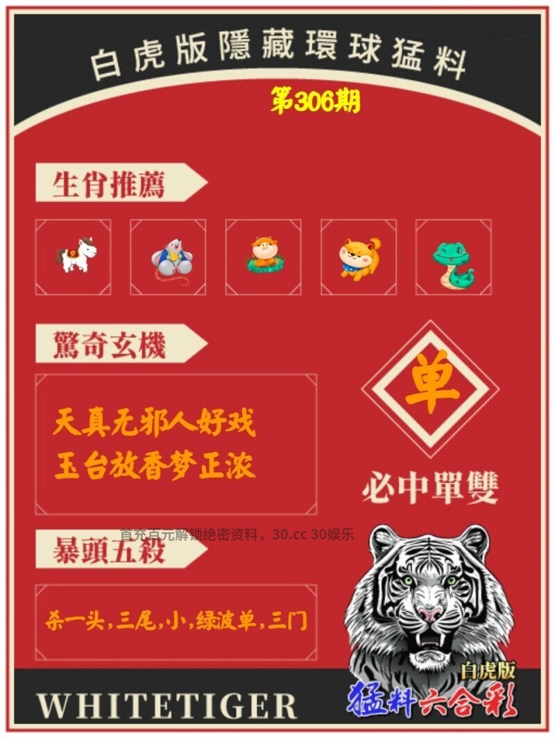 | 306期:单双中特▷单单单◁开:牛17准 |